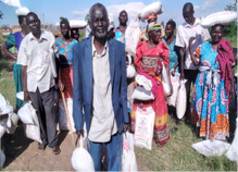 Veronica (bottom centre) lives in Odimai Village in the parish of Odiding. She is 17 years old and lives alone with her brother as they lost both their parents, the mother due to untreated malaria in 2021 and the father in 2024 in a road traffic accident. She was encouraged to join a VSLA group by a neighbour and makes a little money by helping to weed neighbours gardens but it is hard to find the funds to buy basic commodities. She is very grateful for the mosquito nets and food items as they are now able to eat two meals a day and are protected from malaria which her brother had just recently recovered from.